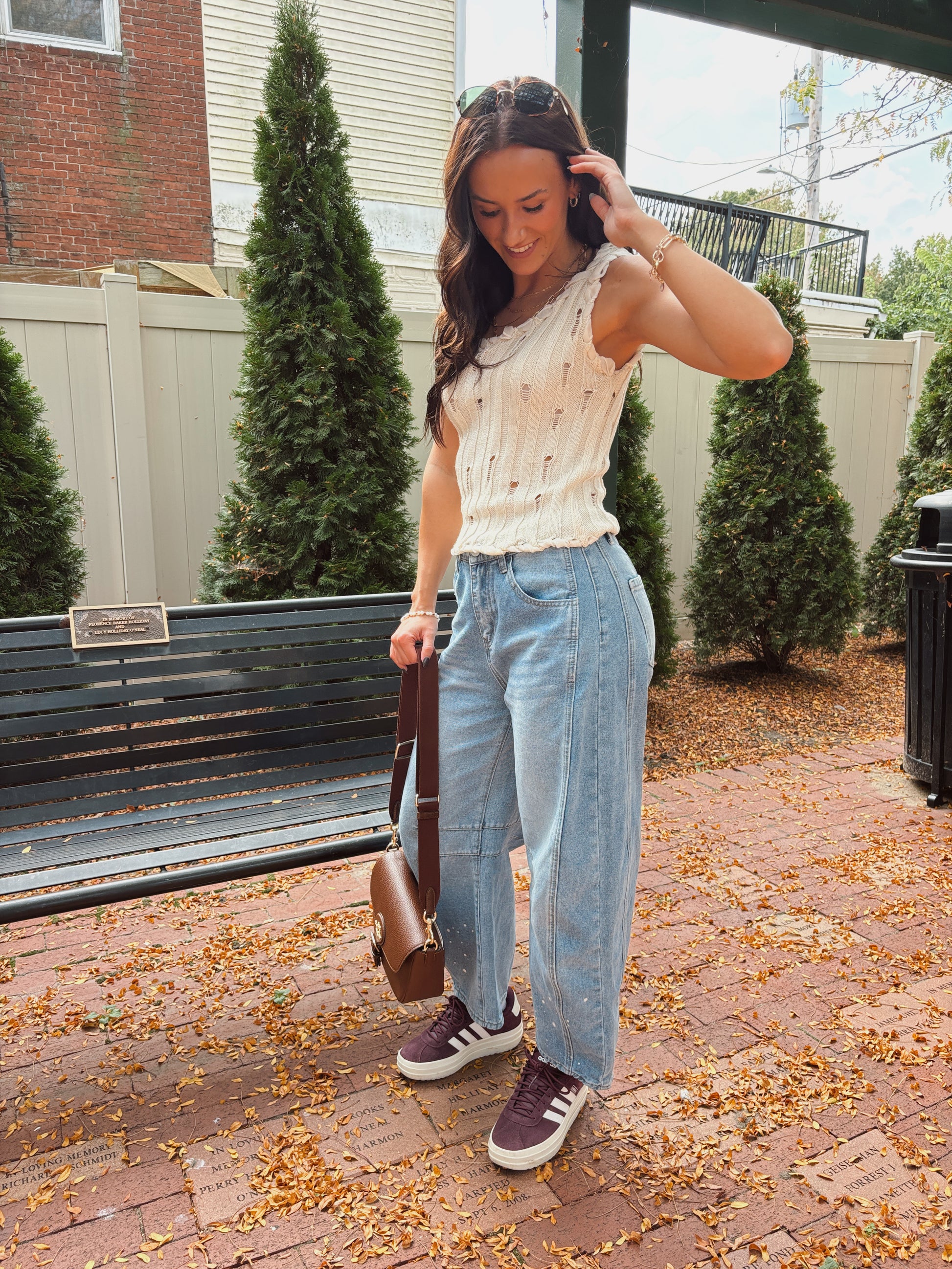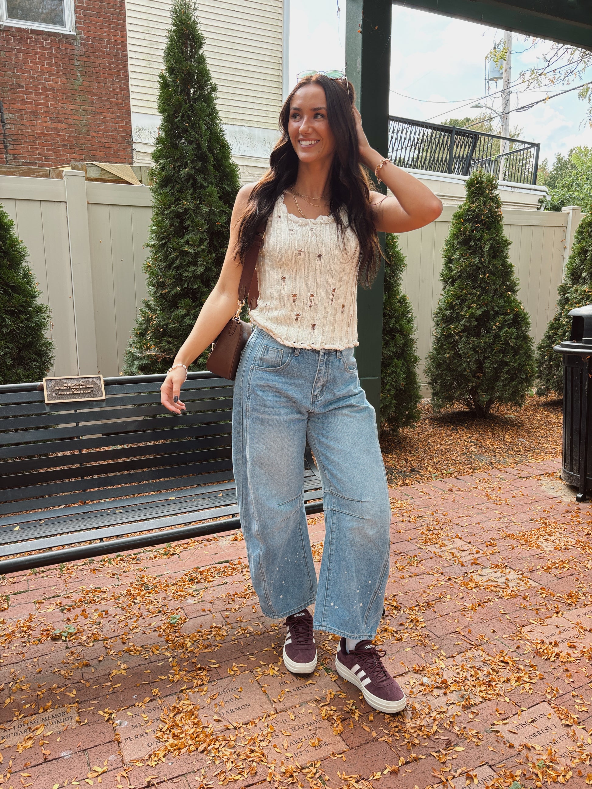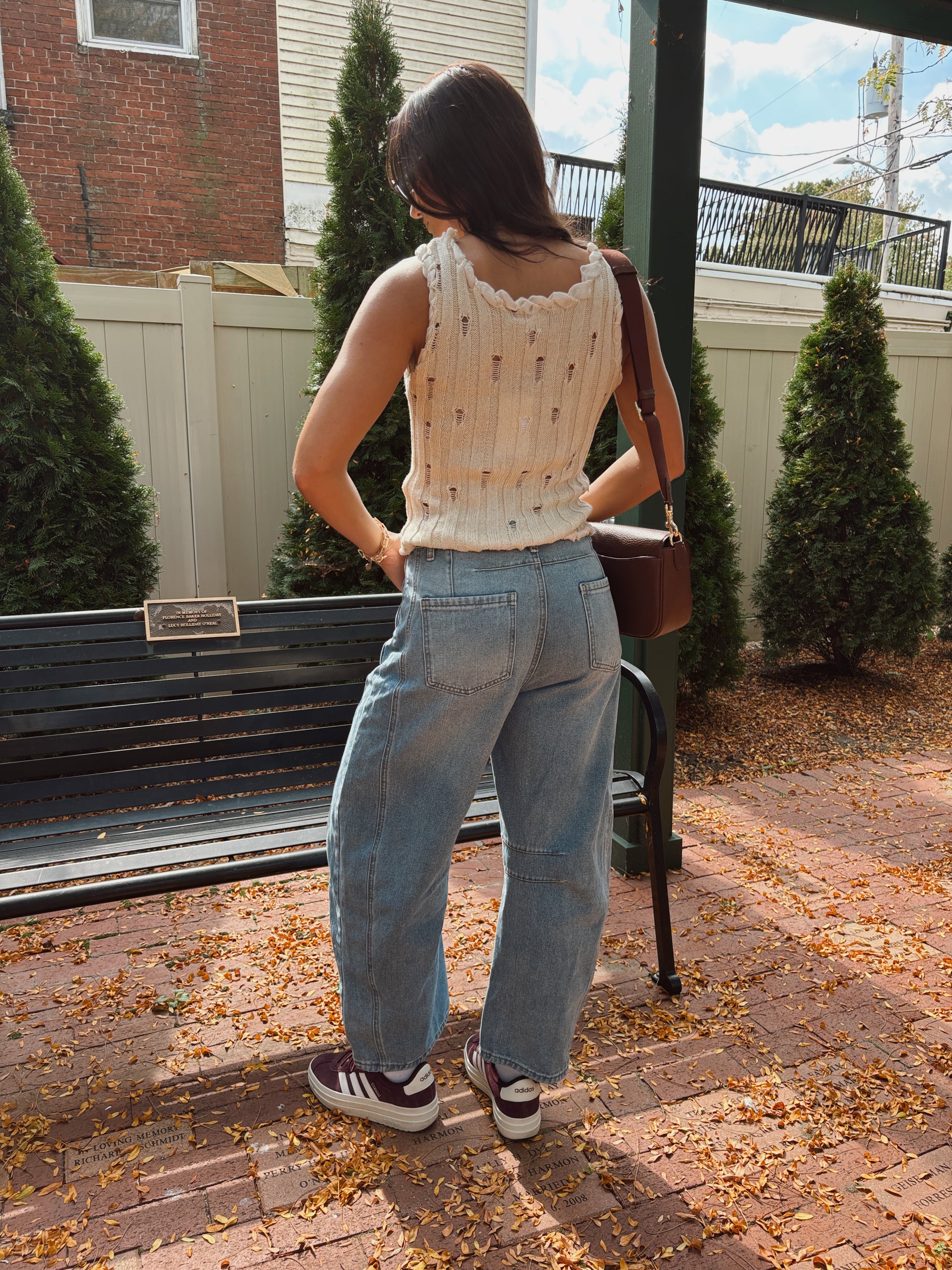 Tali tankis a sleeveless knit top features a relaxed, textured design with subtle distressed details, giving it a laid-back, boho vibe. The braided trim along the neckline and hem adds a touch of artisanal charm, making it a unique addition to your wardrobe. Perfect for pairing with denim or layering for a casual yet stylish look.