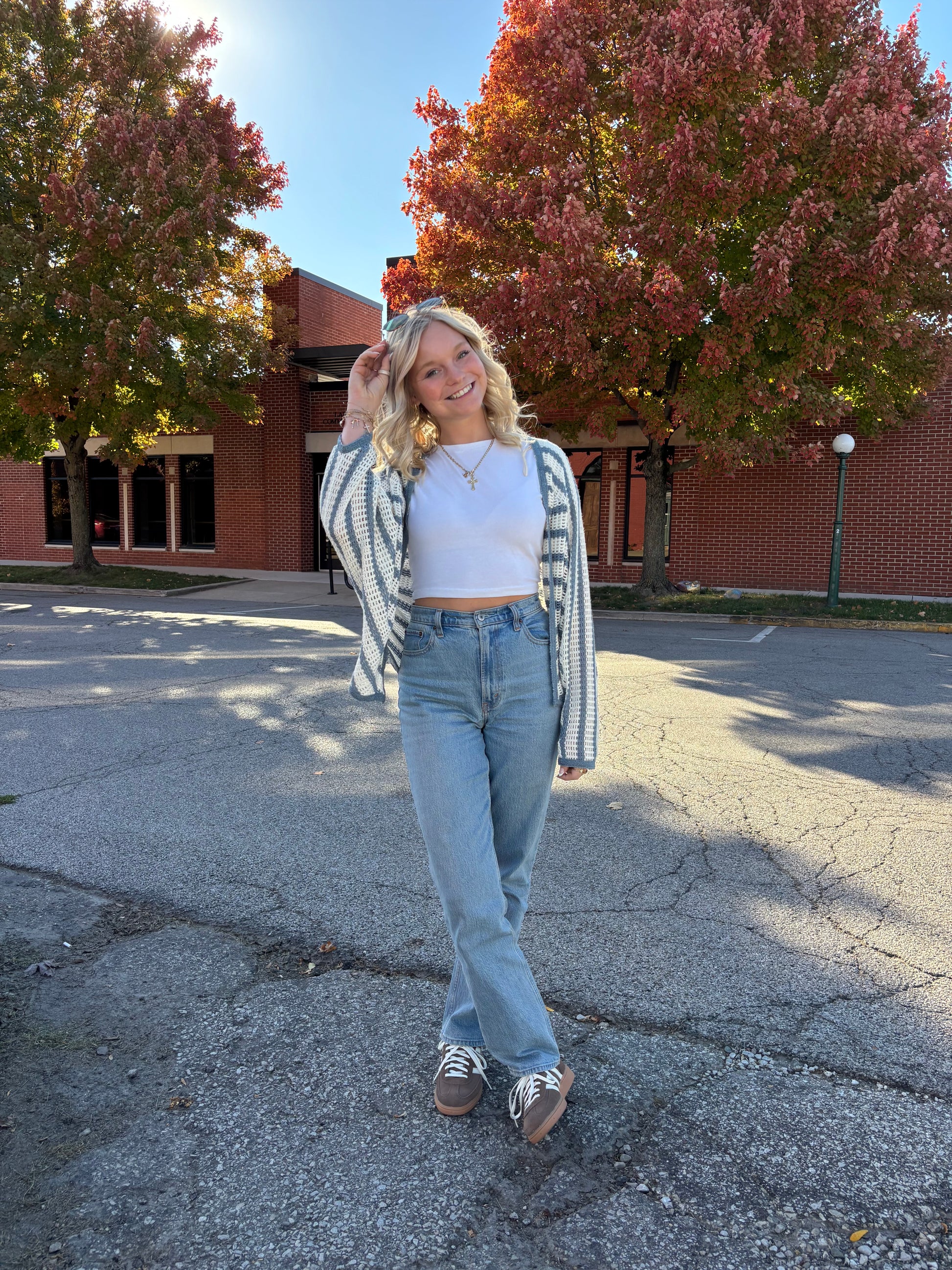 With a fresh mix of white and denim blue stripes, this cardigan brings a clean vibe to any look. Made with from a soft, breathable knit, it’s perfect for those in-between weather days when you want just a hint of warmth without the bulk. The relaxed, open-front design makes it easy to throw on over tanks, tees, or dresses for that polished finish.