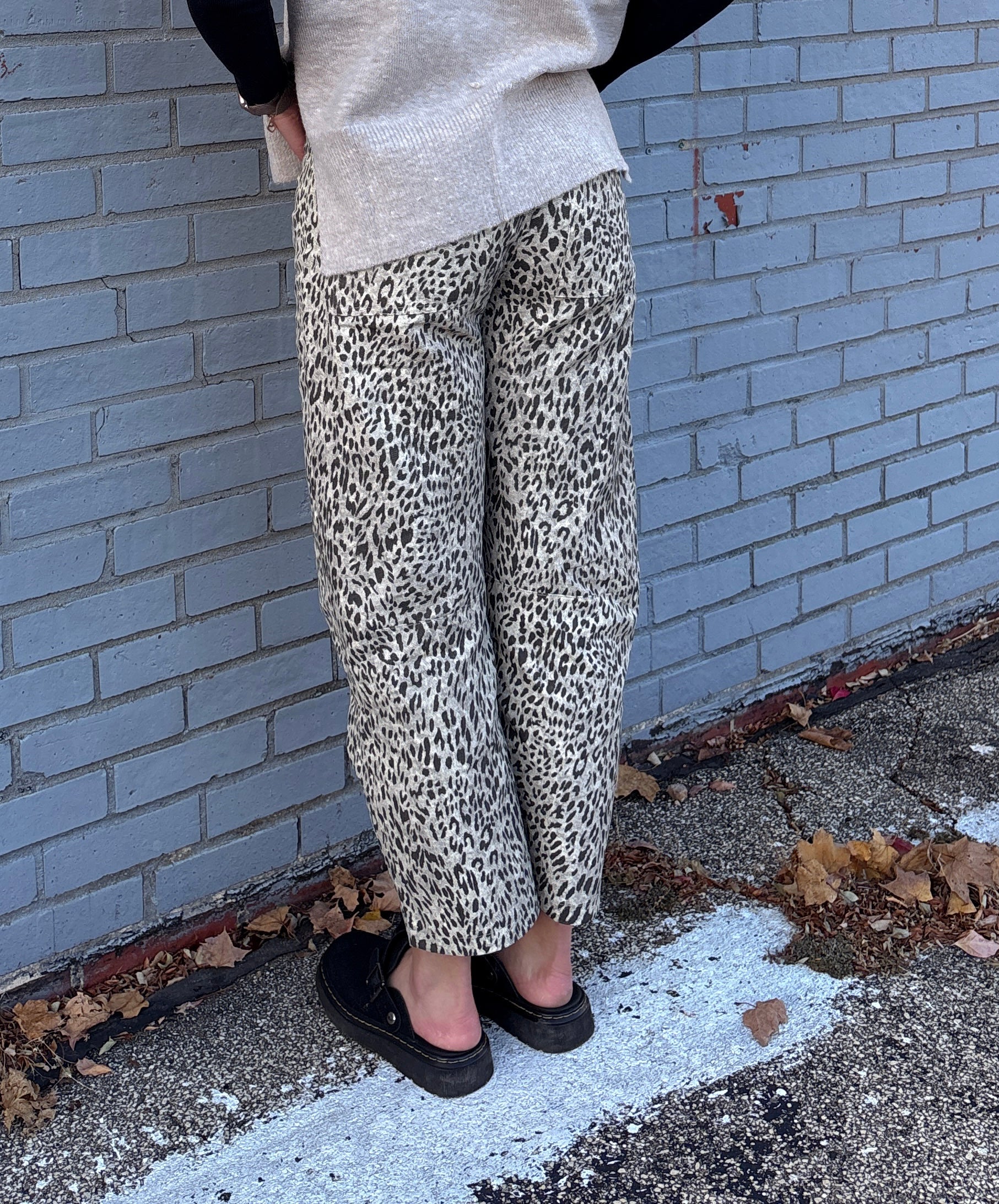 Make a statement without saying a word! Our Leopard Luxe Jeans bring a bold, playful twist to classic denim. Featuring a low-rise waistband, oversized square front pockets, and chic seam detailing, these barrel-leg jeans hit right at the ankle for that effortlessly cool, semi-baggy vibe. Perfect for tucking in a tee for laid-back days or dressing up with heels for a night out — these jeans are all about fun, fearless style.