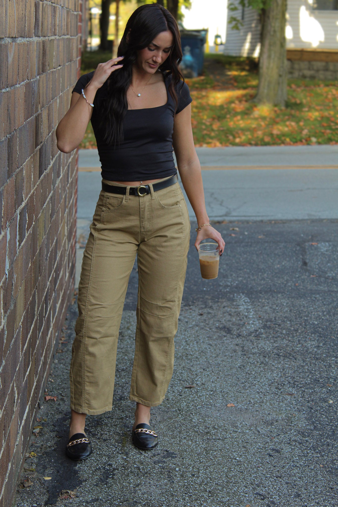 Crafted in a soft, light brown polyester & cotton, these barrel-leg jeans offer structure and shape with a gentle taper that hits just above the ankle. The high-rise fit flatters the waist, while the curved leg adds a modern touch that elevates even your simplest looks. Whether paired with a crisp white tee or a fitted knit, these jeans are made to move with you.