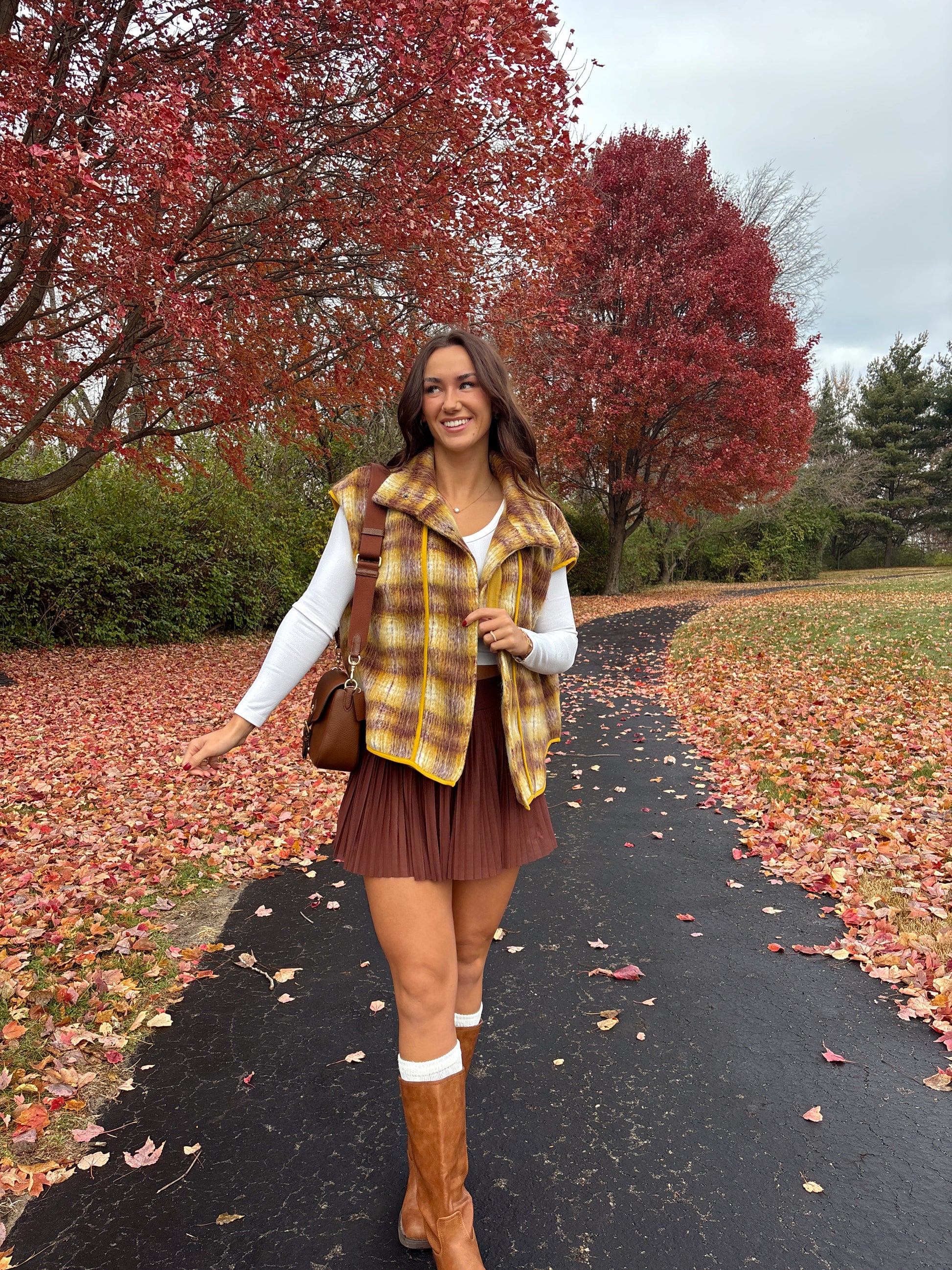 Wrap yourself in cozy nostalgia with our Autumn Archive Vest. Designed in a vintage plaid wool blend, this oversized beauty features a chic mock neck and classic snap-button front for that perfect touch of retro charm. Handcrafted with comfort in mind, it layers effortlessly over your favorite knits or long sleeves — the ultimate fall statement piece for any cozy day out.